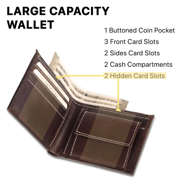 DEL ROSKOSH Brown Men’s Wallet, 12 Card Slot | Bifold with Button Closure